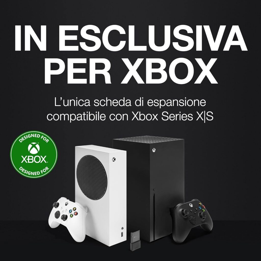 - IN ESCLUSIVA PER XBOX. L’unica scheda di espansione di memorizzazione compatibile con la tecnologia Velocity Architecture di Xbox. Assicura tempi di caricamento più brevi, dettagli più ricchi e gameplay più coinvolgente