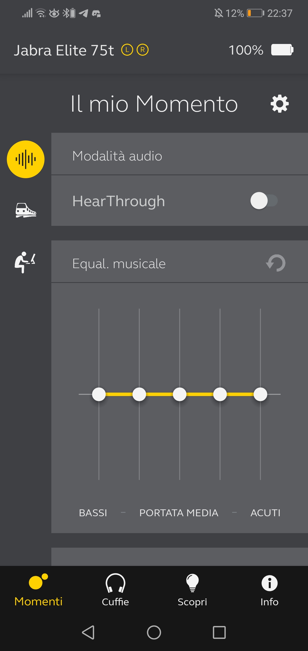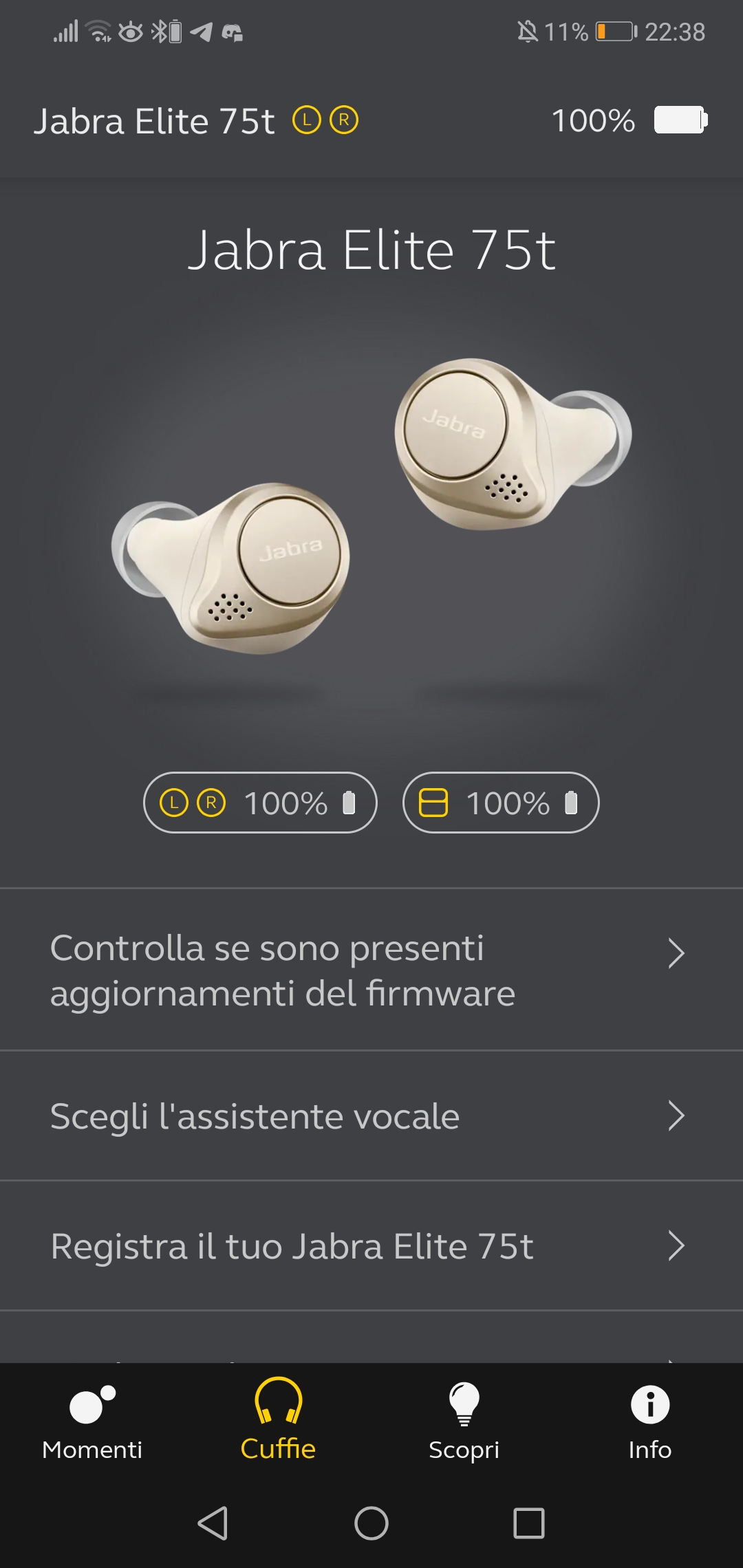 La stessa applicazione delle E8 di 3rd Generazione non è al pari di Jabra Sound+, quest’ultima decisamente più elegante e rifinita. Un plus niente male. Ovviamente, la qualità in chiamata è altrettanto alta, ma non credo sia questo il focus delle 75t. L’autonomia al momento è quella dichiara dal produttore, che cala sensibilmente quando spingiamo le cuffie a un volume sostenuto. In ogni caso avremo sempre sotto controllo sia la ricarica delle cuffie che della custodia.